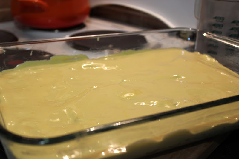 Umutiti bjelanca sa šećerom, dodati im omekšali margarin, orahe i brašno. Pleh premazati margarinom i posuti brašnom pa smjesu za kolač sipati u pleh.
